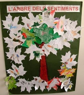 PERQUÈ DE LES SEVES FULLES NOMÉS NEIXEN COSES BONES. ENTRE TOTS I TOTES I AMB CERES ES PINTA L'ARBRE. A CADA ALUMNE SE LI DEMANA QUE DIBUIXI EN UNA FULLA DE L'ARBRE EL QUE MÉS LI AGRADA DE L'ESCOLA I DESPRÉS LA MESTRA HO ESCRIU. D'AQUÍ SURTEN FRASES COM: "M'AGRADA L'ESTRELLA VESTIDA DE PRINCESA", "M'AGRADA SENTAR-ME A LA CADIRA"...DESPRÉS REFLEXIONEM ENTRE TOTS I ELS EXPLIQUEM QUE HI HA NENS I NENES D'ALTRES PAÏSOS QUE NO PODEN ANAR A L'ESCOLA, QUE LES SEVES ESCOLES NO SÓN COM LES NOSTRES... QUE L'EDUCACIÓ NO ÉS IGUAL PER A TOTHOM.